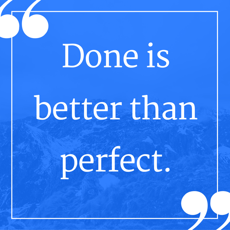 And remember, DONE is better than PERFECT. Always, every time. Because done allows you to learn and grow and build on what you have completed. Perfect can’t be reached and if it is your goal it may very well prevent done from happening.